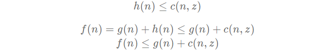 Suppose an optimal solution exists with a cost C*, but our algorithm returned another solution with a cost C, greater than C*. Then that means a node n that is on the optimal path has not been expanded. And because we are using a best-first search algorithm, it must mean that the evaluation value of that node was greater than C, and thus, greater than C* (otherwise, we would have expanded it). For this proof, we denote c(n, z) as the optimal cost from node n to the goal.