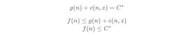 because n is on the optimal path, the cost to reach n in conjunction with the optimal cost to reach the goal from n, we get the optimal cost, C*.