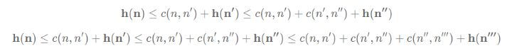 Where n is any node and n’ is any of its successors. This inequality must hold for every node, so it’s true for its successors n’ as well. And so we have: