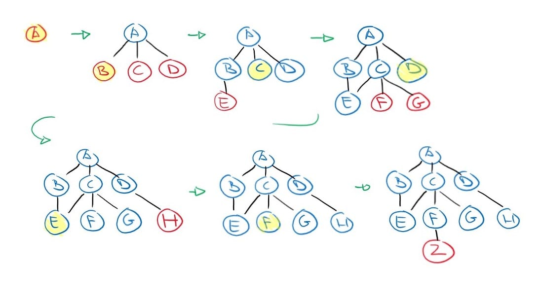 Breadth-first Search (first-in-first-out / queue)