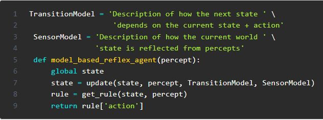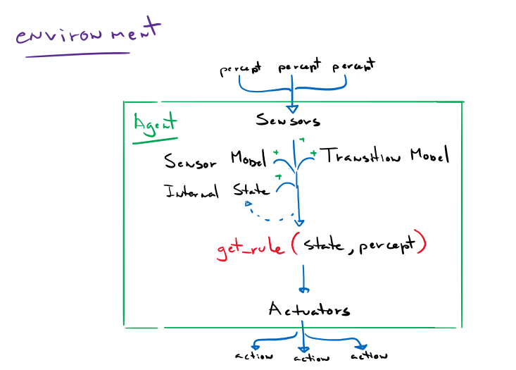 Updating its internal state and the state of objects/agents around it requires two kinds of knowledge to be programmed into the model in some form. First, the agent needs to know ‘how the world works’, ‘how the world changes over time’. For example, a self-driving vehicle needs to know what happens when it opens the engine throttle or turns the steering column. This is called a transition model. Second, the agent needs some information about how the state of the world is reflected in the agent’s percepts. Or in other words, ‘how to make sense of the world it sees’. This is called a sensor model.